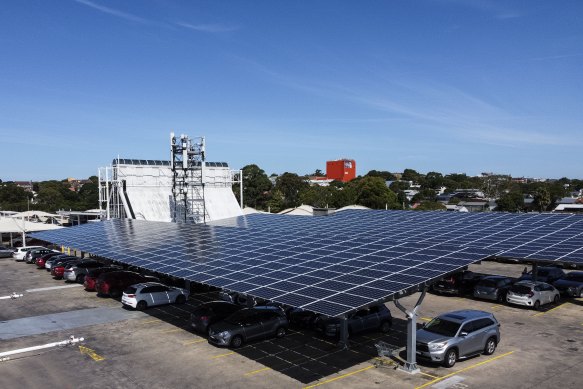 Solar awnings over car parks that are becoming compulsory in France and are under consideration in California could save emissions, water and lives in Australia.