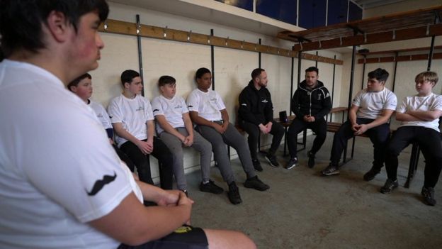 Boys told "open up" don't "man up" by top rugby players, in a suicide prevention scheme.